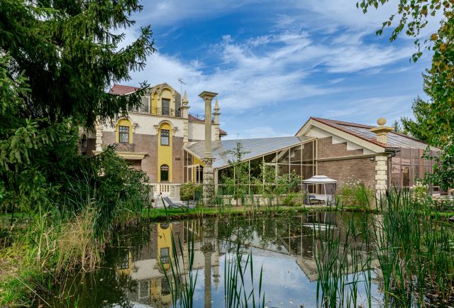 Основной дом (650 кв.м.) предлагает на первом этаже великолепную СПА-зону с сауной и хамамом, а также просторную зону отдыха с камином, массажными креслами и кинозалом. Из основного дома можно перейти в дом-шале, где расположены гостиная, кабинет, большая профессиональная кухня-барбекю с залом для гостей. На участке также находится дом для персонала (80 кв.м). Гараж в контуре дома предоставляет 2 парковочных места.