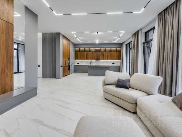 В отделке интерьера использованы ценные породы дерева, мрамор, множество декоративных элементов, эффектных люстр и бра, создающих особую роскошную и гармоничную атмосферу.
