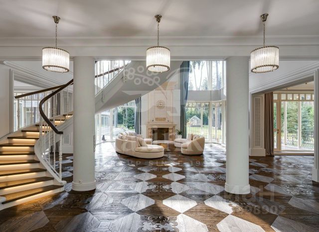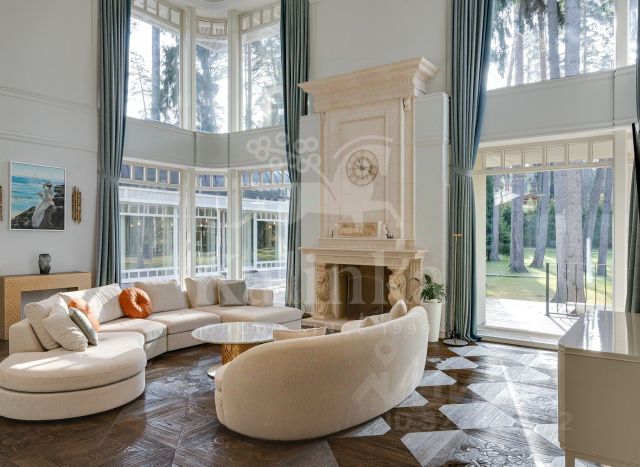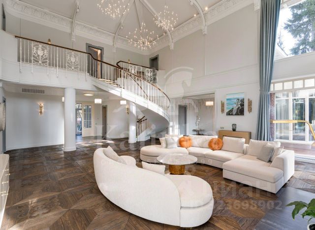 Лот: 9921639. ЭКСКЛЮЗИВ NF GROUP. Дом с мебелью 1031 кв.м на участке 41 cот. Кол-во спален: 6. Кол-во с/у: 5. Поселок "Риита". 1-е Успенское шоссе, 21 км от МКАД. Без комиссии для покупателя. На великолепном, приватном участке с вековыми соснами, предлагается стильный дом из лиственницы. Большие панорамные окна и второй свет гостиной предают дому атмосферу уюта. Отдельным строением гараж на три машины, блок персонала, котельная. Вместительная наземная парковка. Цоколь: Свободная планировка с большим количеством зон хранения. Первый этаж: Гардеробная для верхней одежды, Гостевой санузел, Обеденная зона с переходом в зону кухни, Просторная гостиная со вторым светом и дровяным камином, Две спальни(детские) с небольшой гостиной, санузел, Спортивный зал, Бассейн с противотоком, Сауна, Хамам, Комната отдыха, Гостевая спальня. Второй этаж разделен на два автономных блока: Детский блок с двумя спальнями и санузлом, имеющим выход на балкон с панорамным видом, Мастер блок с гардеробной и санузлом. На участке расположен гараж на 3 машины и дом для персонала. Новый поселок расположен в лесном массиве на 1-ом Успенском шоссе. Поселок является одним из самых востребованных на Рублево-Успенском шоссе. Существенной деталью является то, что используя дорогу через Лапино и Солослово, можно объехать пробку в Горках-2. Продам загородную недвижимость в коттеджном поселке Риита городского округа Одинцовского.