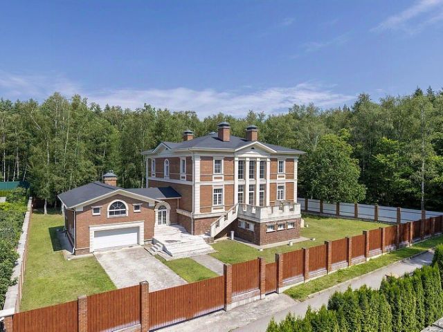 ID 183. Двухэтажный дом в поселке "Барвиха-21", в 5 километрах от МКАД по Рублево-Успенскому шоссе. К поселку ведет асфальтированная освещенная лесная дорога. Добраться до поселка также можно по дороге, ведущей из "Барвихи-21" к Подушкинскому шоссе в районе развязки с платной трассой этот путь займет всего 5 минут. Особняк площадью 943 кв. метра готов к проживанию, продаётся в состоянии "под ключ" без мебели. Фасад с панорамными окнами отделан натуральным камнем, с фрагментами обшивки доской из лиственницы. Расположение помещений по этажам: 1 этаж: прихожая с гардеробом, холл, гостиная со вторым светом и камином, столовая-кухня, кинозал, кабинет-библиотека, комната отдыха с сауной и санузлом, постирочная, гостевой санузел, котельная, гараж на 2 автомобиля. 2 этаж: холл-галерея с выходом на просторный балкон, три спальни, каждая из них с индивидуальной ванной комнатой и гардеробными, у каждой спальни выход на балкон. Все центральные коммуникации электричество (25 кВт), газоснабжение, водопровод, канализация. Особняк стоит на опушке леса, площадь участка 34 сотки Посёлок расположен на границе лесопарковой зоны. Есть выход в лес, где находится детский игровой комплекс и спортивная площадка. Любителям активного отдыха предоставлена вся территория лесопарка. Жителям доступны различные объекты социальной инфраструктуры, расположенной в непосредственной близости от посёлка в Барвихе, Раздорах и Жуковке. В этом районе есть несколько дошкольных и общеобразовательных учреждений, например современная школа им. Е.Примакова. Номер лота: 183