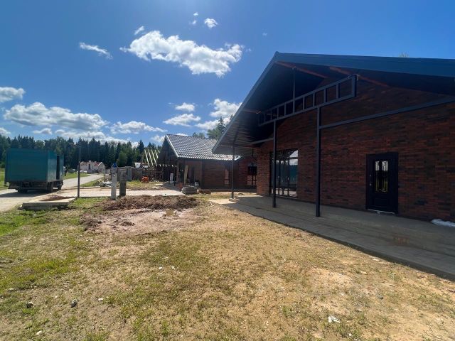 На участке расположен просторный двухэтажный дом, общей площадью 120 м2. Дом выполнен из качественного бруса, дополнительно утеплён и обшит имитацией бруса. Дом стоит на ленточном фундаменте. Благодаря выполненной дренажной системе участка, дом всегда сухой, теплый и уютный. Установлены качественные, современные оконные блоки и дуба с двойным стеклопакетом. На первом этаже располагаются: гостиная, кухня-столовая, спальная, санузел, гардеробная, котельная, просторная прихожая. На втором  спальная, кабинет, просторный холл и кладовая. Также оборудован чердак, обшитый вагонкой, для хранения вещей. Чердак получился просторный, светлый, сухой, с хорошей вентиляцией.