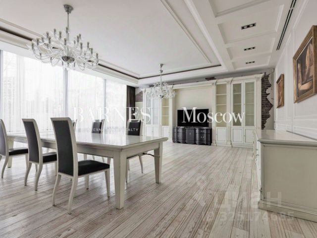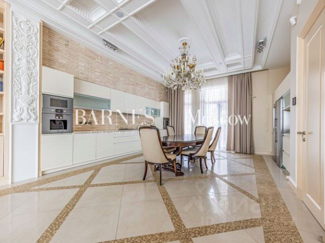 Первый этаж - парадная часть виллы, где утонченный стиль объединяется с функциональностью. Здесь есть все для комфортной жизни: элегантная входная группа со знаменитыми итальянскими светильниками FLOS и дизайнерским круглым столом ANDREAU WORLD гармонично сочетающимися с настенными панелями из эвкалипта. Лаконичный, наполненный светом кабинет с итальянской мебелью от POLIFORM и Meridiani, просторная гостиная с панорамными окнами, авторским камином работы знаменитого скульптора Александра Чичкина, мебелью от Meridiani и PORADA, уютным индийским ковром ручной работы и шикарным видом на окружающие сосны. Столовая со столом от PUNT MOBLES на 10 персон и стульями РОТОССО, с выходом на террасу. Кухня с мраморной столешницей EMPERADOR DARK на острове для уютных домашних завтраков и всей необходимой премиальной техникой: плита, вытяжка, духовой шкаф BERTAZZONI.
