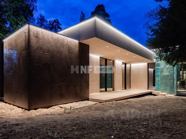 Лот: 9920051. ЭКСКЛЮЗИВ NF GROUP. Дом без отделки 843 кв.м на участке 30 cот. Кол-во спален: 5. Кол-во с/у: 8. Поселок "Жуковка 3". Рублево-Успенское шоссе, 8 км от МКАД. Без комиссии для покупателя. Уникальный дом 843 м² на участке в 30 соток в посёлке Жуковка 3 в 8 км от МКАД по Рублево-Успенскому шоссе. Этот проект — авторская работа Александры Фёдоровой, признанного мастера современной архитектуры. Дом занимает приватное и тихое расположение внутри поселка, вдали от посторонних глаз. Дом строился "для себя" — с применением дорогостоящих премиальных материалов, высококлассной инженерии и вниманием к каждой детали. Это действительно эксклюзивное предложение для ценителей архитектуры, уюта и качества без компромиссов. Планировка дома продумана до мелочей: просторный холл, несколько гардеробных и санузлов, каминный зал-столовая, основная и рабочие кухни с кладовыми, женский и мужской кабинеты (один из которых может служить спальней), отдельная зона для персонала с собственным входом, постирочная, бельевая, серверная, гараж на 3 машины и мастерская (имеет рядом санузел и можно сделать блок спальни). В жилой части — мастер-блок с будуаром, гардеробной, ванной и спальней, а также две детские спальни, каждая с гардеробной и с/у. Проект по вентиляции предусматривает увлажнение, по электрике выполнялся с учётом возможности установить "умный дом". Высота потолков — впечатляющие 6 метров, это придаёт пространству объём и лёгкость. Имеется готовый дизайн-проект интерьеров от студии SL, выдержанный в лаконичном и современном стиле. Фасад дома выполнен из португальского известняка, натурального гранита, премиального керамогранита и патинированной меди, что создаёт эффектную и благородную архитектурную палитру. Выполнено фасадное освещение на европейском оборудовании премиального уровня. Установлены эксклюзивные окна Skyframe и профили Schco, обеспечивающие максимум света, тепла и шумоизоляции. Дом уже введён в кадастр, функционирует отдельная котельная с двумя котлами Viessmann, а также своя скважина. Подведено 150 кВт электроэнергии, выполнен проект по вентиляции, слаботочным системам и освещению, установлены зенитные фонари для естественного дневного света. 1 Этаж: холл, гардеробная, с/у, серверная, кладовая, гараж на 3 м/м, мастерская (спальня), с/у, каминный зал-столовая, кухня, рабочая кухня с кладовой для продуктов, хозяйская кухня, кабинет женский, спальня с с/у и гардеробной, спальня с с/у и гардеробной, постирочная, с/у, бельевая Изолированная зона персонала: спальня, кухня, с/у, отдельный вход Мастер блок: будуар, гардеробная большая, ванная комната, спальня, 2 детские спальни каждая со своей гардеробной и с/у. Элитный коттеджный поселок "Жуковка-3" расположен на 8-м км Рублево-Успенского шоссе в окружении реликтового соснового леса. В поселке возведены 80 роскошных особняков площадью от 250 до 1500 кв.м, каждый из которых являет собой настоящий шедевр современной архитектуры. Каждый элитный загородный коттедж имеет участок от 10 до 50 соток, обрамленный индивидуальным ландшафтным дизайном. Территория поселка круглосуточно охраняется, полностью благоустроена, проложены асфальтовые дороги, установлено парковое освещение, обустроена гостевая автостоянка. Профессиональная служба эксплуатации поддерживает бесперебойную работу передовых инженерных систем. В непосредст