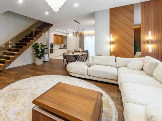 Элегантный таунхаус 300 м² в поселке Лесной Простор Пространство, комфорт и безупречный вкус — дом для тех, кто ценит высокий уровень жизни в окружении природы. Характеристики: Площадь дома — 300 м² Участок — 6 соток Дополнительно: зона хранения 70 м² под кровлей (не входит в общий метраж) Интерьер и планировка: Просторная гостиная с панорамным остеклением и камином Hoxter Кухня Leicht с техникой Miele Три спальни, четыре санузла, гардеробные Отдельная СПА-зона, постирочная Гараж на 2 автомобиля Отделка и оснащение: Дом с отделкой под ключ, использованы премиальные материалы Сантехника Hansgrohe, Duravit Системы кондиционирования, приточно-вытяжная вентиляция, видеонаблюдение Фильтрация воды, автоматическая система бесперебойного электропитания, защита от протечек Территория: Две крытые террасы Хозяйственный блок Профессиональный ландшафтный дизайн Автоматический полив, декоративная подсветка, мощёные дорожки Документация и коммуникации: Полный комплект проектной и технической документации Все коммуникации — центральные Посёлок и окружение: Территория с круглосуточной охраной и видеонаблюдением Детская площадка, футбольное поле (зимой — каток) Рядом — магазины, школы, детские сады, рестораны Удобный доступ к Москве: два выезда на платную трассу Лесной Простор — камерный посёлок, утопающий в зелени, где тишина, чистый воздух и высокий уровень сервиса создают атмосферу загородного клуба.