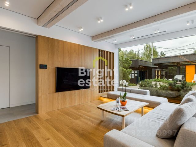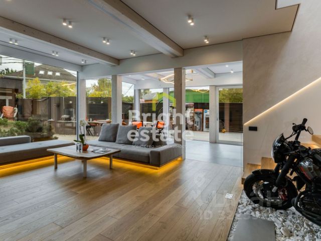 1 этаж: холл, гардеробная при входе, гостевой санузел, хамам с душевой, отдельная кухня-столовая, гостиная с дровяным камином и потолками 3.8! метра, мастер-спальня с большой гардеробной и санузлом, кабинет/спортзал с санузлом + блок с отдельным входом для родителей/персонала со своей кухней-гостиной, спальней и санузлом, а также 2 крытых террасы с выходом к бассейну.