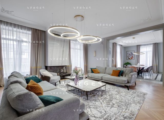 Дом с видом на лес в КП "Ренессанс парк" — идеальный выбор для вашей семьи. Уютный особняк располагает пятью спальнями, тремя гардеробными и четырьмя ванными комнатами. На первом этаже — гостиная с камином, столовая и кухня. Второй этаж отведен под спальни, гардеробные и ванные. Также есть кабинет и помещение для персонала. Под домом — гараж. Участок в 17 соток окружен лесом, что дарит свежий воздух и близость к природе. Дом удобно расположен, все готово к заселению.