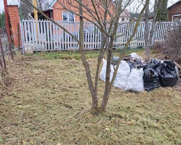 Участок ровной прямоугольной формы. На участке садовый двухэтажный домик, хозяйственные постройки, парник.