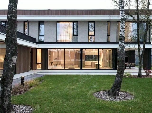 Конус. Загородный коттедж площадью 900 м² расположен на живописном лесном участке 22,5 соток. Фасад, облицованный светлой штукатуркой, выполнен в классическом стиле, что подчёркивают элегантные молдинги, колонны и симметричная форма здания. Наполненные солнцем интерьеры гармонично сочетают фактуры камня и дерева, а комфортная мебель и предметы декора создают ощущение уюта. Для идеального микроклимата установлена система кондиционирования.