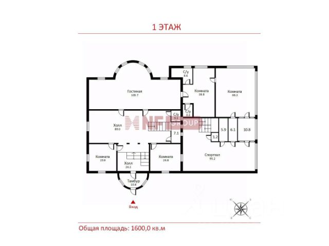 Спа-зона: сауна (6,8), хаммам (8,1), зона спа с душевыми и джакузи (12,8), раздевалка (5), с/у (2,4).