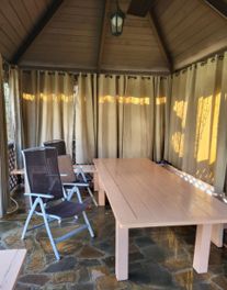 Дом в стиле шале и баня из клееного бруса построены СК Русский запад в охраняемом КП Зеленый Ветер 1 на Ильинском шоссе. Площадь дома: 246,7 кв.м Площадь бани: 30 кв.м Площадь участка: 8 соток Стародачное место в лесном массиве с развитой инфраструктурой и прекрасной транспортной доступностью по Ильинскому, Рублево-Успенскому и Новорижскому шоссе. 1 этаж - высокие потолки, единое пространство гостиной с камином, кабинетом и кухней. Выход на террасу и в сад. Панорамное остекление. Ванная комната. 2 этаж - четыре спальни, ванная комната, балконы. Подвал - постирочная, с/у, котельная с котлом De Dietrich, три контура отопления, отдельный вход с улицы. Инженерные коммуникации: центральное водоснабжение, автономная канализация, электричество 25 кВт, теплые водяные полы в ванных комнатах и прихожей, паркетная дубовая доска, черепица Braas, керамические дымоходы Schiedel. Фундамент и подвал монолитный бетон, перекрытие первого этажа заводские ж/б плиты по индивидуальным размерам. Баня 30 кв. м с дровяной печью. Можно использовать как гостевой дом. На участке: по периметру 3-6 метровые туи. В саду лемуановские сирени, чубушники, розы, гортензии, азалии, рододендроны магнолии и редкие хвойные, плодовые деревья и кустарники. Зона барбекю и двухуровневая терраса. В поселке: охрана, видеонаблюдение, артезианская скважина, оптоволокно Citytelecom, детская площадка, выход в лес (рядом с митрополичья дорога XVIвека). Низкие внутрипоселковые взносы. Коммуникации в общедолевой собственности жителей посёлка. # экология, # лес, лесничество, # история, # река, пруд, парк # школы, гимназия, # охрана, #готов к проживанию