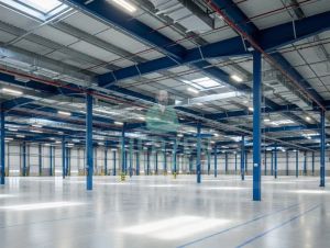 Ровный бетонный пол с антипылевым покрытием. Допустимая нагрузка на пол 7 т/м2.
