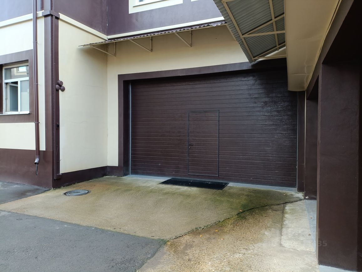 - въезд/выезд - секционные автоматические ворота (2 шт.) и секционные автоматические ворота с калиткой (1 шт.);