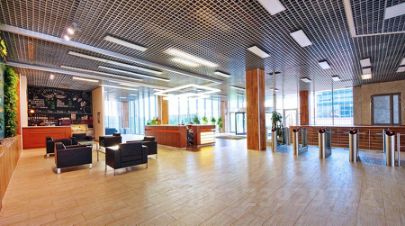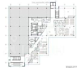 Описание помещения: В блоке есть стойка ресепшн и зона ожидания посетителей, зоны open space, переговорные, кабинеты руководителей, технические помещения, кухни и сан узлы.