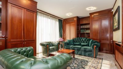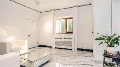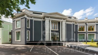 Двухэтажный особняк в Деревне Барвиха. Современное здание выполнено в стиле современного классицизма с элементами неоклассики. Темно-синий фасад украшен белыми колоннами коринфского ордера, которые поддерживают треугольный фронтон. Внутри смешанная планировка, выполнен качественный ремонт. Проведены центральные коммуникации, приточно-вытяжная вентиляция и сплит-системы. Для удобства передвижения установлен лифт, За безопасность отвечают система пожаротушения и видеонаблюдения. На прилегающей территории организована наземная парковка на 10 машин. Особняк подходит для размещения ресторана или шоурума.