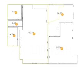 Сдается офисное помещение 91 м2, состоящее из двух изолированных комнат, входной зоны и двух подсобных помещений.