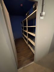 Доступ в кладовую через лифт и отдельный выход. Кладовка находится рядом с лифтом. Также имеется выход во двор. Кладовая оборудована стеллажами.