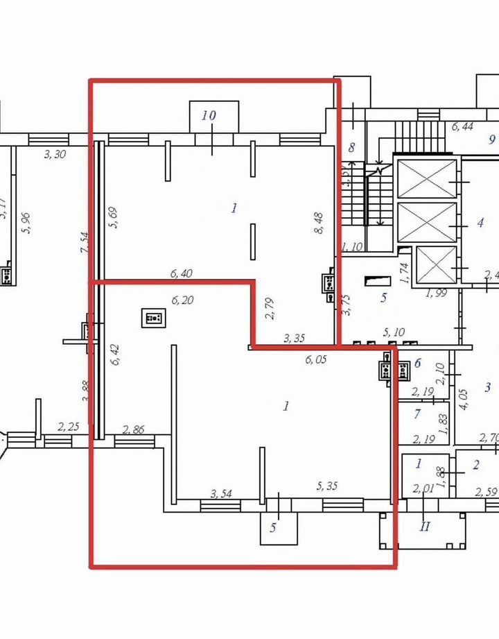Светлое помещение с высокими потолками. Есть возможность объединения со смежным.