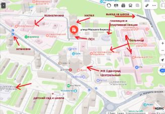 инфраструктура: школа, детский сад, гимназия, больница, поликлиника, ЖК Одинград Центральный, администрация