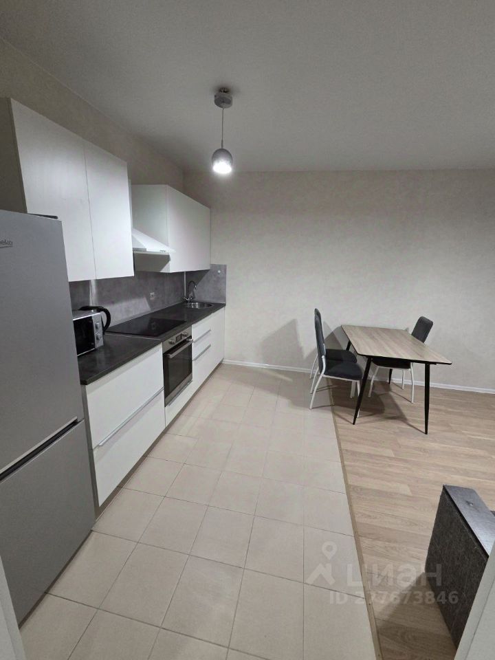 Кухня IKEA с качественной фурнитурой с доводчиками, индукционная плита, духовка, микроволновка, чайник и холодильник. На кухне также есть диван угловой, стол и стулья. В спальне двуспальная кровать, прикроватные тумбочки и большой зеркальный шкаф. вторая комната без мебели.
