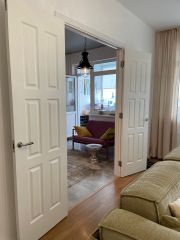 Шикарная видовая квартира с высокими потолками и качественным ремонтом с изящным сочетанием скандинавского дизайна с лофт-стилем! Нестандартные стильные двери! Уникальная планировка: грамотное зонирование отделяет хозяйскую спальную и гардероб с большим санузлом, а двойные двери в большую кухню с гарнитуром в потолок и "островом" со всей необходимой техникой (от посудомоечной машины и двух холодильников до духовки и микроволновки, от кофемашины и мультиварки до соковыжималки и блендера)! Постирочная комната с тихой стиральной машиной Whirlpool, два гардероба, два санузла с плиткой до потолка с качественной сантехникой. Полноценная детская комната с магнитной стеной для рисования, детской кроватью с качественным матрасом и игровой горкой. Две утепленные лоджии оборудованы под гостевую комнату и рабочий кабинет. На полу качественные ламинат и плитка, в квартире 3 мощных кондиционера, 4 телевизора и 3 MiBox, в спальне кровать с матрасом шириной 180 см! Сам дом кирпичный с 2 лифтами в подъезде и подземным паркингом. Тамбур с отдельной железной дверью на 3 квартиры с милейшими соседями.