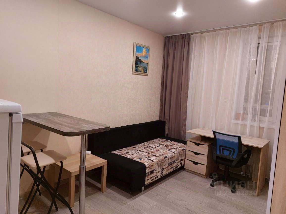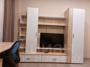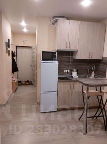 Студия полностью меблирована и укомплектована необходимой техникой: холодильник, варочная панель, стиральная машина, телевизор, микроволновая печь.