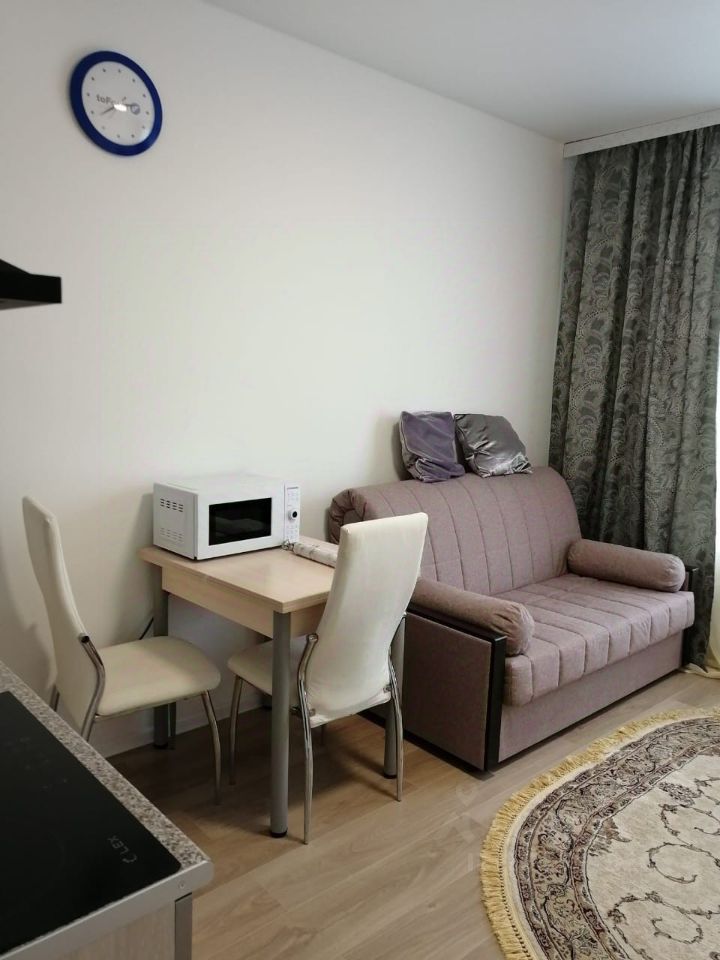 Сдаётся 1-комнатная квартира-студия с евроремонтом. Квартира оборудована всей необходимой мебелью и бытовой техникой (диван-кровать, холодильник, стиральная машина, телевизор, плита, вытяжка, микроволновая печь). Вся мебель и техника в отличном состоянии. Санузел совмещенный. Квартира расположена в районе с развитой инфраструктурой (продуктовые магазины, кафе, салоны красоты, аптеки).
