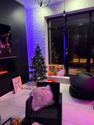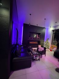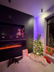 * В квартире имеются: камин, караоке, отпариватель для одежды, кофемашина, плита, духовой шкаф, чайник, посудомоечная машина, ванна, робот- пылесос, смарт- ТВ, Wi-Fi; двуспальная кровать, диван-кровать, кожаный диван, рабочий стол со стулом, очистка воды,