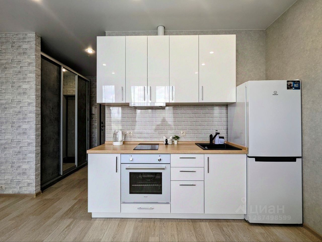 Полностью меблирована и укомплектованная всей необходимой бытовой техникой: холодильник, плита, духовой шкаф, стол, стулья, телевизор, раскладной диван.