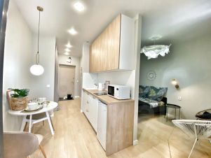 Удобства: двуспальная кровать, шкаф для хранения одежды, кухонный гарнитур.