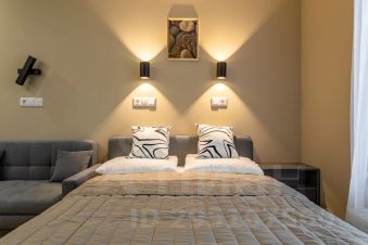 В студии всё для комфорта: ЖКтелевизор, стиральная машина, фен, утюг. Полностью оснащенная кухня с техникой, посудой и столовыми приборами, чай и сахар включены. Удобная кровать, обеденный стол со стульями, вместительный шкаф. Постельное бельё (выглаженное) и махровые полотенца, средства гигиены(гель для душа, шампунь, мыло). Полное соответствие студии фотографиям.