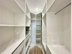 Для удобства хранения вещей при спальне сделана гардеробная с выдвижными ящиками, корзинами, полками и штангами под висясую одежду.