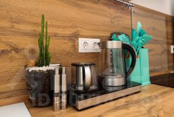 - Вместимость до 6 человек (двуспальная кровать + два двуспальных дивана).