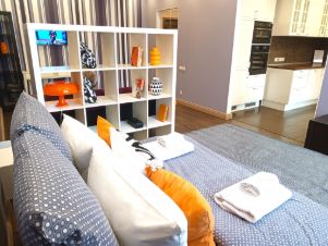 Большая кухня со встроенной техникой, плита, холодильник с морозильником, духовой шкаф, печь СВЧ, есть вся необходимая посуда. Удобная двуспальная кровать, с качественным пастельным бельём и меню подушек, помогут вам хорошо выспаться и восстановить силы. На уютном диване вы можете комфортно расположиться с книгой, посмотреть телевизор. Для вас высокоскоростной интернет wi-fi, смарт тв.