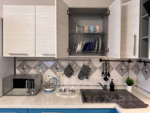 Кухонная зона с плитой, микроволновкой, чайником и всей необходимой посудой