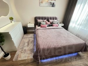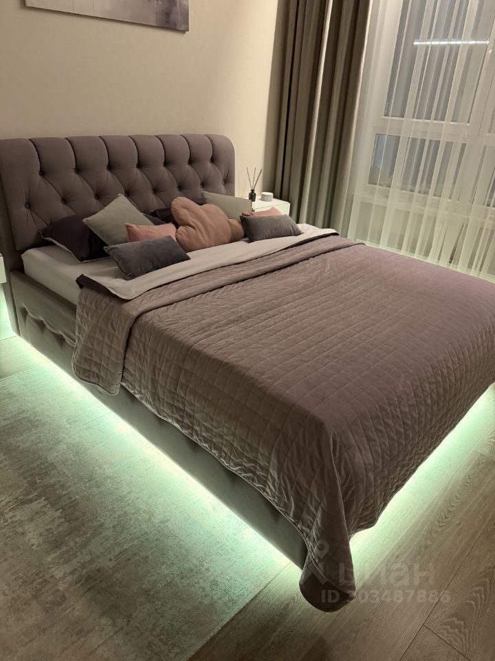 В спальне кровать с умной подсветкой (64 цвета ), управляется голосом через Алису.