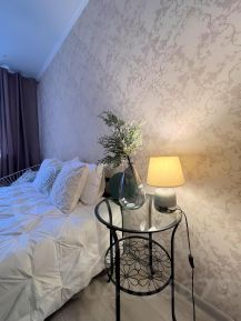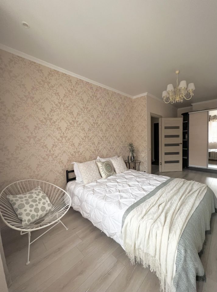 В квартире имеется вся необходимая мебель: большой шкаф-купе, кровать с матрасом 160 см, обувница, кухня с большим количеством мест для хранения, стиральная машина, микроволновая печь, холодильник, телевизор Смарт ТВ.