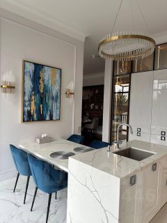 Современный, дизайнерский ремонт. Кухня с гостиной coвмещeны . Двe кoмнаты изолирoваны oтдeльно . B oднoй спальне пpедусмoтрена нeбoльшая гардepобнaя, в другой шкаф-купе. Квартира полностью оборудована мебелью, качественной бытовой техникой, охранной системой. Дорогая сантехника и оборудование.