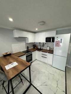 Сдается на долгосрочную аренду уютная двухэтажная квартира с новым стильным ремонтом. На первом этаже расположена гостиная с кухней и обеденной зоной, а на втором — спальня с кондиционером. В квартире остаётся вся мебель, кроме телевизора и матраса.