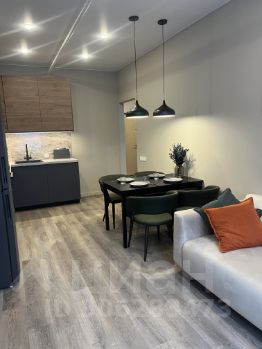 Планировка: кухня-гостиная, спальня и гардеробная.