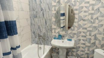 В квартире сделан свежий качественный ремонт. Отдельно выделена кухня. Установлен кондиционер, заведен интернет. Есть встроенный кухонный гарнитур, новая плита с духовкой, холодильник, микроволновая печь СВЧ, стиральная машина, стол с двумя стульями, кровать 160*200, шкаф-купе для одежды, телевизор. Куплены подушки, одеяла, комплект постельного белья, полотенца, посуда и кухонные принадлежности.