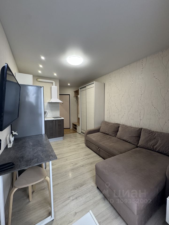 Студия в оживленном микрорайоне, но в тихом месте в непосредственной близости к лесу. При этом остановка, магазины и аптеки в пешей доступности.