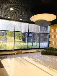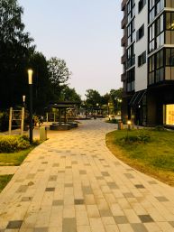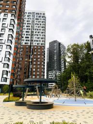 Дом комфорт-класса, монолитные стены, красивая входная группа (панорамное остекление), большой холл с высокими потолками, 3 лифта. Очень красивая придомовая территория, как в парке. Создан целый мини-город с детскими и спортивными площадками, зонами отдыха.
