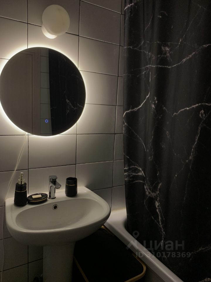 - в ванной комнате: ванная, шкаф настенный, зеркало с подсветкой, стиральная машина;