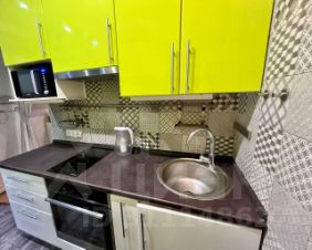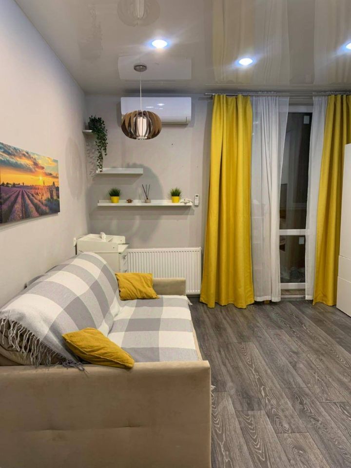 Квартира-студия с дизайнерской планировкой, в хорошем состоянии. Ремонт делали для себя. В квaртиpе есть все необходимое для проживания: спальное место (раскладной диван Аскона с ортопедическим матрасом), xoлодильник, стиральная машина, компьютерный стол, шкаф-купэ, мебель для хранения вещей, тв и интернет. Кухонная зона отделена от комнаты и оборудована: микроволновка, духовой шкаф, варочная панель.