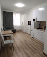 Качественный евроремонт, высокий потолок, белые стены, 25 кв.м.! (не 20 как многие студии в данном комплексе). Мебель и техника новые, подключен интернет. Холодильник, стиральная машина, телевизор, СВЧ, варочная панель, чайник, вытяжка, теплый пол.