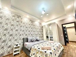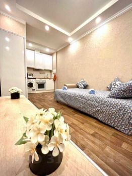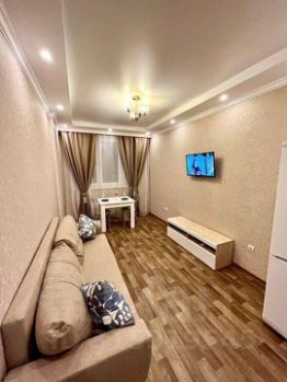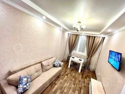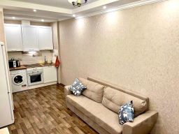 Квартира оборудована всем необходимым для комфортного проживания: двуспальная кровать, диван, кухонная зона, бытовая техника, собственная ванная комната и туалет.