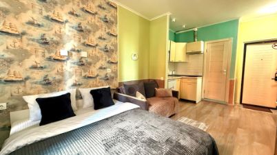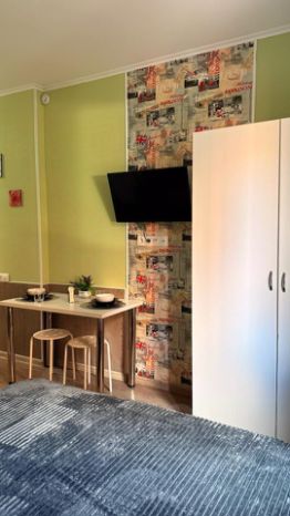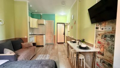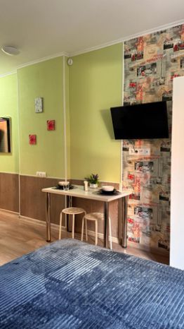 Студия полностью оборудована для комфортного проживания: телевизор, бесплатный Wi-Fi, стиральная машина, утюг, фен, варочная панель, чайник и микроволновка. Есть штопор и бокалы. Регулярная уборка профессиональной химией и дезинфекция от насекомых, а также смена белья на чистое и свежее проводятся перед каждым заездом.