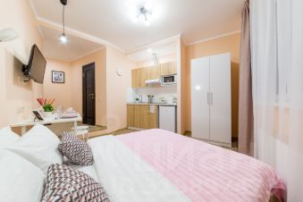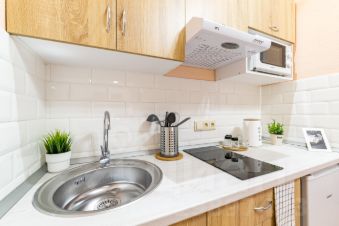 Студия полностью оборудована для комфортного проживания: телевизор, бесплатный Wi-Fi, стиральная машина, утюг, фен, варочная панель, чайник и микроволновка. Есть штопор и бокалы. Регулярная уборка профессиональной химией и дезинфекция от насекомых, а также смена белья на чистое и свежее проводятся перед каждым заездом.