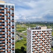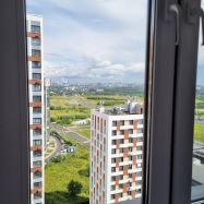 Высокий этаж,окна во двор,так же на Инновационный центр и лес.