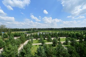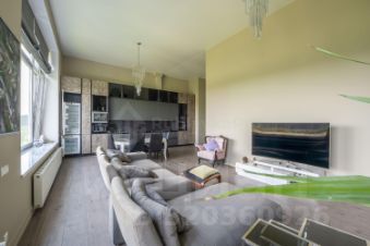 В квартире кухня-гостиная площадью 50 метров с тремя панорамными окнами, из которых открывается вид на каскад прудов, французский парк и лес. Высота потолков 4.5 метра. Мастер-спальня, площадью 20.5 метров с санузлом 7.5 метра и гардеробной комнатой 11 метров. Во второй спальне организовано спальное место на антресоли, под которой находится гардеробная комната. При ремонте использованы натуральные и экологичные материалы: натуральный камень, на полу и в мастер-спальне натуральное дерево. Проложены теплые полы, в том числе и в тамбуре перед входом в квартиру.